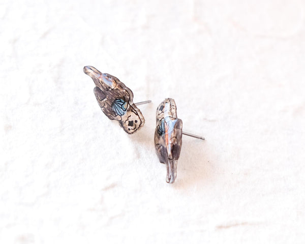 🐚 These handmade stud earrings feature the sweetest little sea otters floating on their backs, each one holding a tiny shell as they drift along. Carefully sculpted with charming details—from their round faces to their gently curved paws—these otter studs bring a touch of coastal whimsy to any outfit. Lightweight, playful, and full of personality, they’re perfect for ocean lovers, animal enthusiasts, or anyone who wants to carry a bit of seaside joy with them wherever they go. Cute, cozy, and irresistibly smile-worthy.