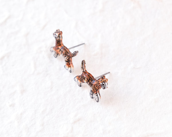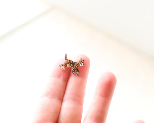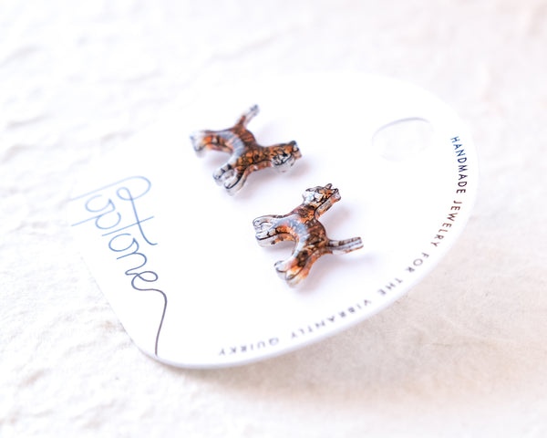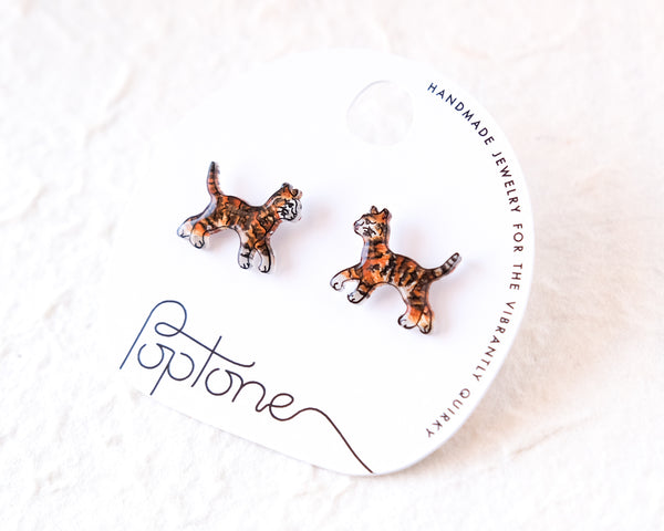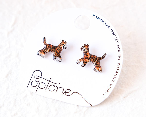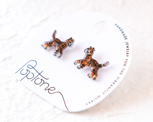 🐅 These handmade stud earrings feature the cutest little prancing tiger cubs, full of energy and playful charm. Each tiny cub is illustrated with bright stripes, perky ears, and a bouncy mid-step pose that captures their wild, joyful spirit. Lightweight and delightfully expressive, these mini tiger studs add a fun pop of personality to any outfit—perfect for animal lovers, big cat enthusiasts, or anyone who appreciates a touch of fierce cuteness. Bold yet sweet, they’re the ideal everyday earrings for bringing a tiny bit of jungle joy wherever you go.